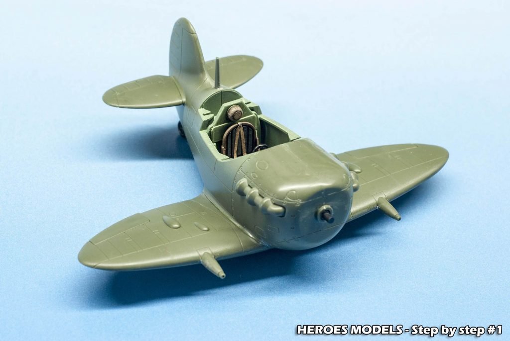The kit is very simple to build and the fitting is very nice. Only seatbelts were added on cockpit. It was colored with Interior Green with some particular colored with Valejo paints by brush.