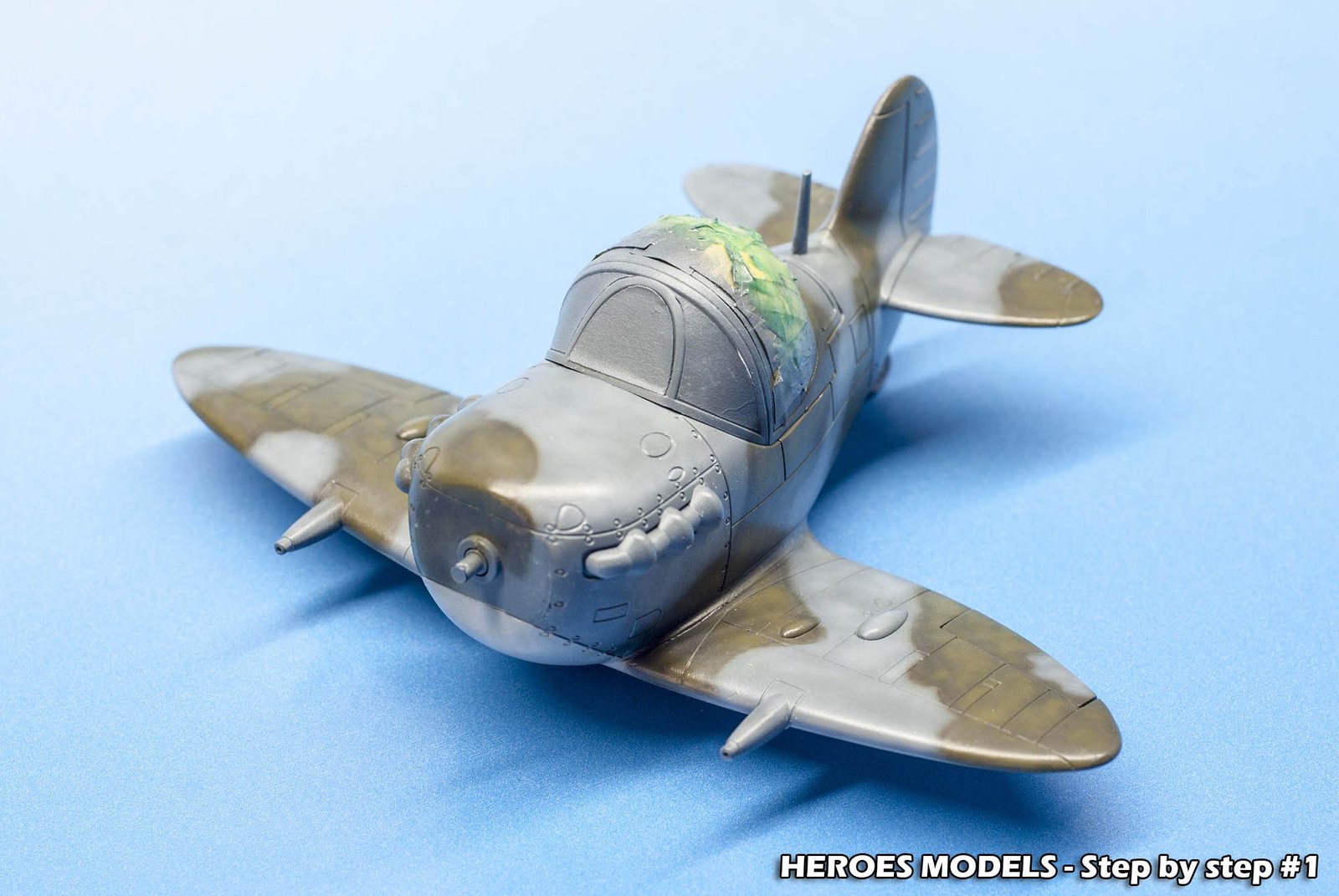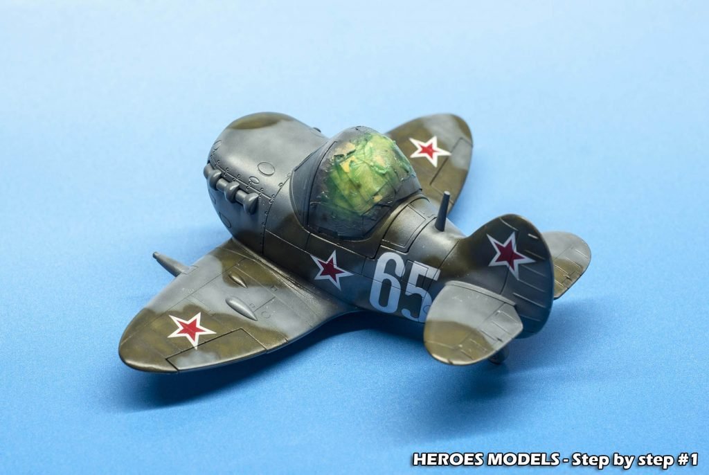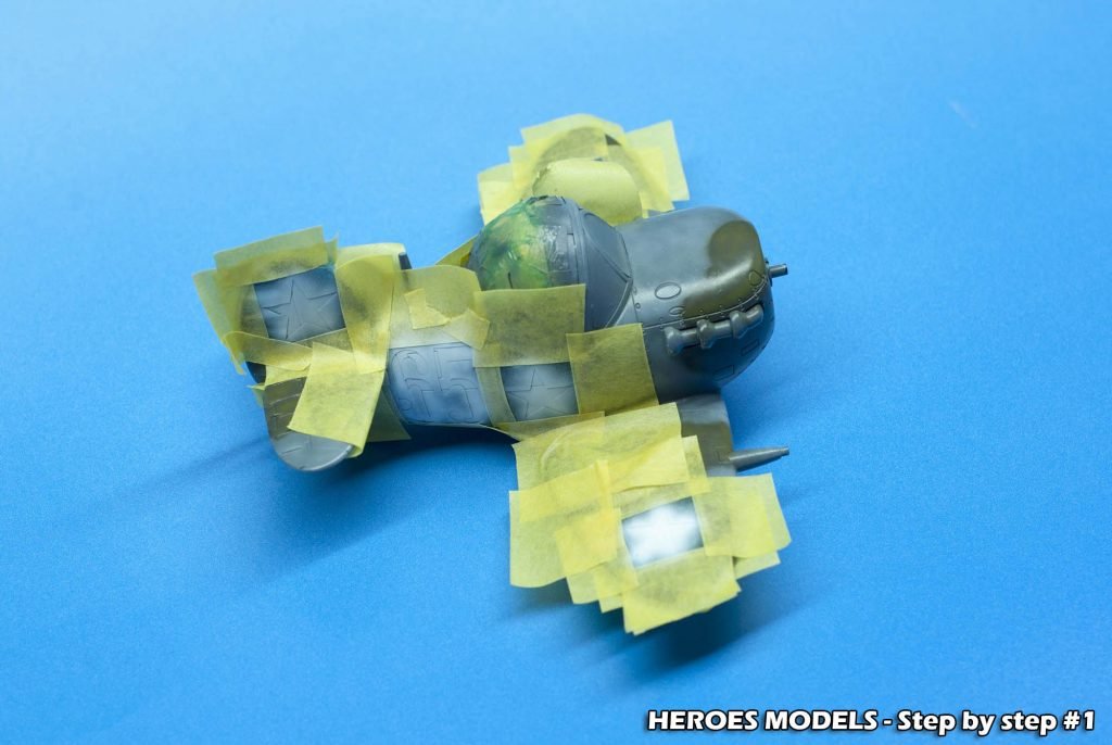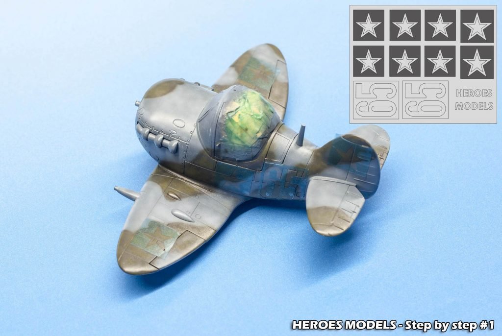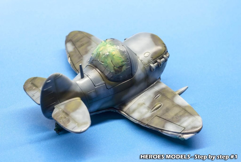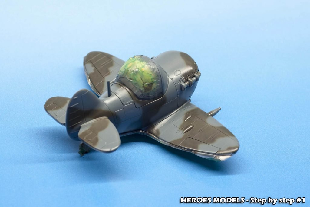 We masked canopy with Heroes Models mask and freehand painted all the plane with Ocean Grey and Dark green.