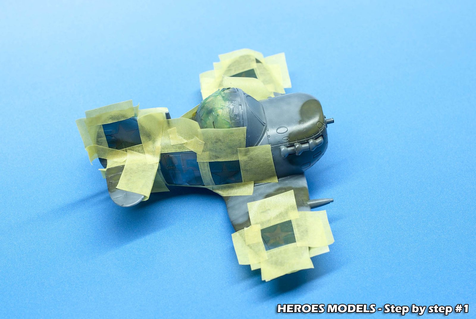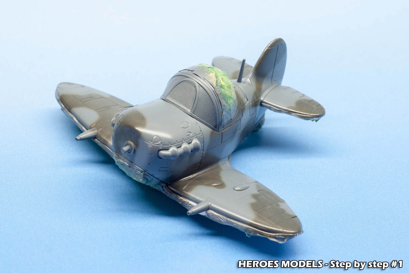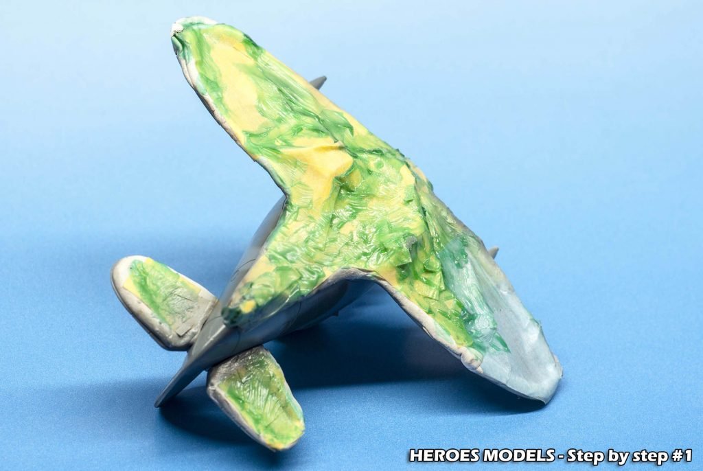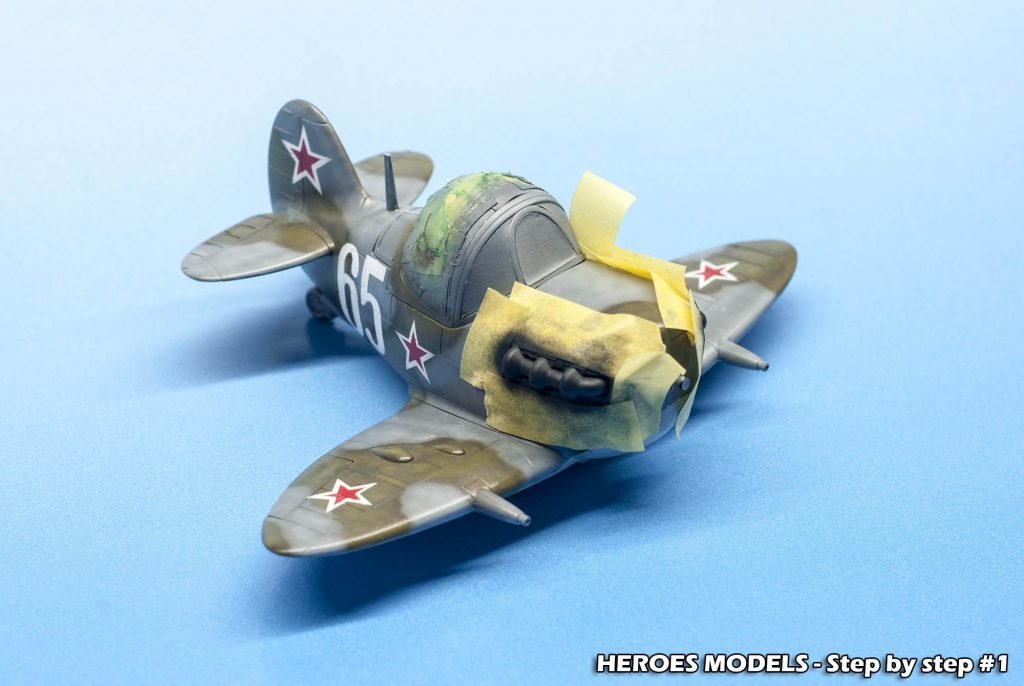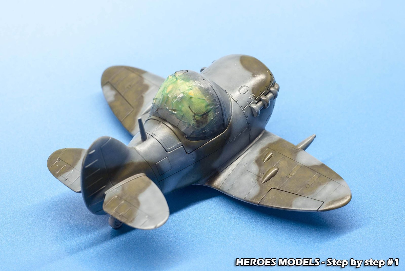 We masked canopy with Heroes Models mask and freehand painted all the plane with Ocean Grey and Dark green.