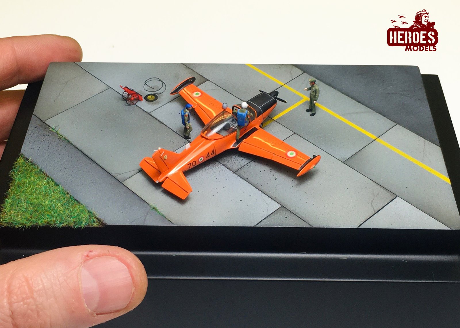 An incredible work made by Stefano De Rensis shows the plane just before another training mission. A pilot, his instructor, and a specialist approaching the plane. The custom figures enlight the scene. Stefano made great work studying the flight suits and the procedures to achieve maximum fidelity in reproduction.